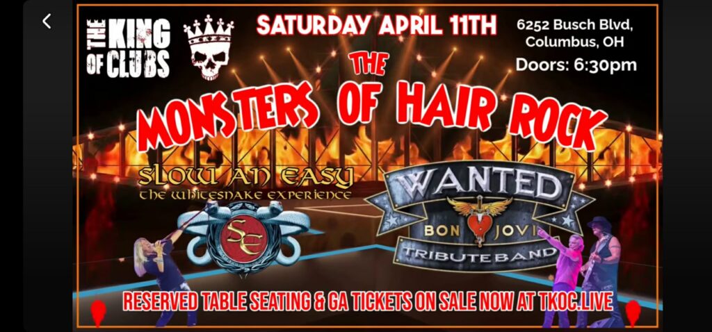 Monsters Of Hair Rock – Slow An Easy – The Whitesnake Experience with Wanted – The Bon Jovi Tribute Band The Monsters Of Hair Rock comes to The King Of Clubs! “Monsters Of Hair Rock” – Bon Jovi & Whitesnake Tributes! at The KING of CLUBS All Reserved Seating Is Now Sold Out! Get your...Continue reading...